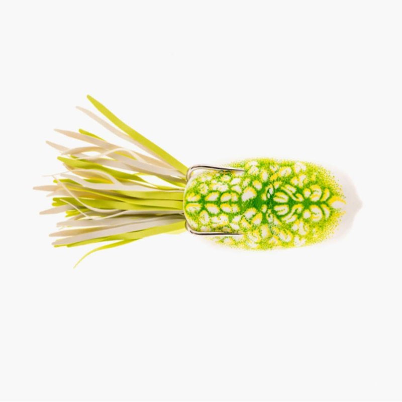 Scum Frog Popper Topwater Bass Fishing Hollow Body Frog Lure with Weedless Hooks, Natural Green and Yellow,One Size