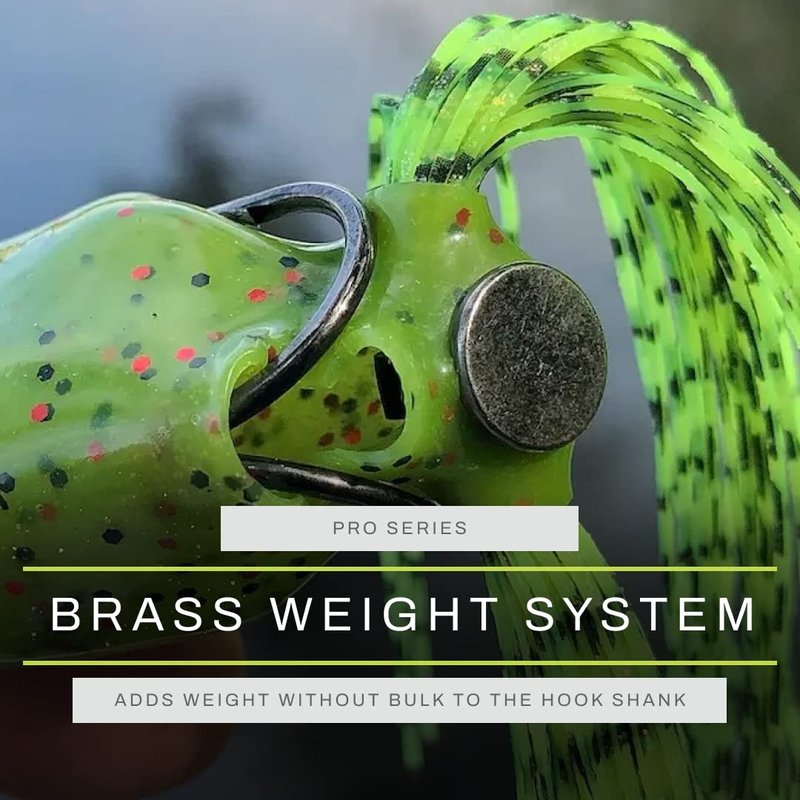 • The hook is a premium, super sharp 4/0 Owner frog hook, which is pointed slightly up to increase your hooking percentage