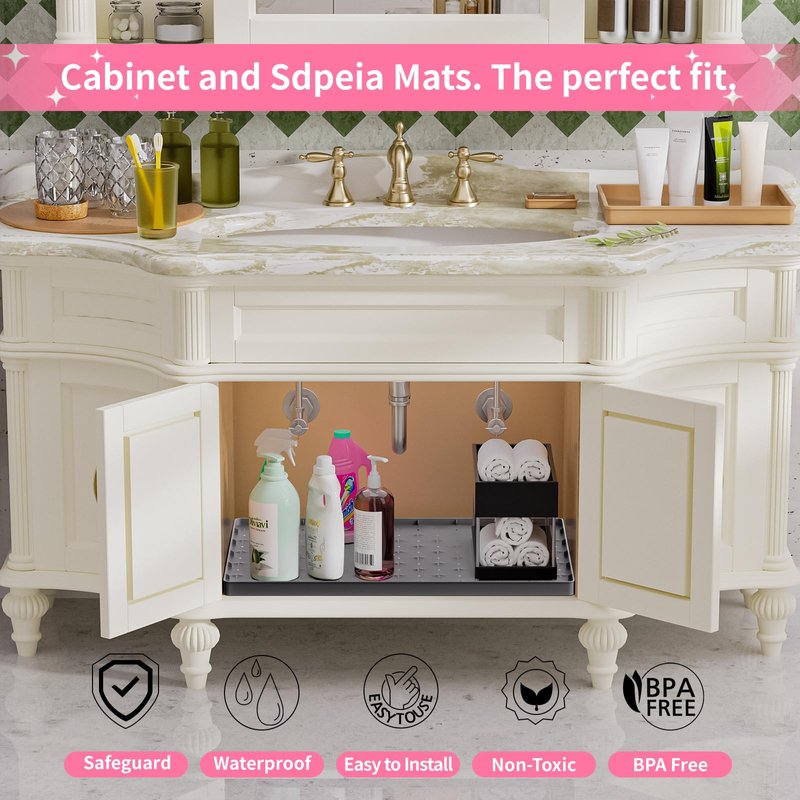 - Sdpeia MAT GUARANTEE: Besides keeping your cabinets neat and tidy, a Sdpeia under-sink mat can also be used as a pet feeding mat, an access door mat, a heat insulation mat, etc. We also provide a lifetime warranty. Please use the "Contact Seller" section of Amazon to contact us if you have any issues with Sdpeia mats. We will offer a solution that completely satisfies you in 24 hours.