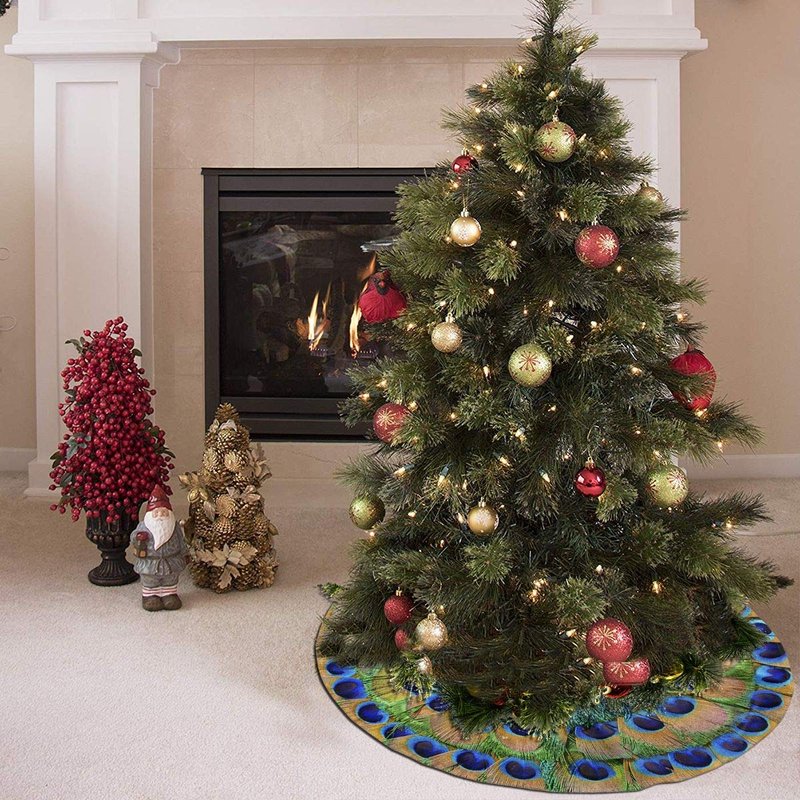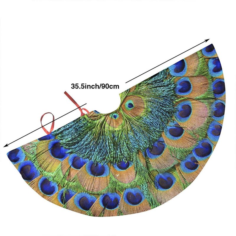 SDSQ HOME Peacock Feathers Circle Traditional Christmas Tree Skirt 35.5 Inch - Holiday Party Decoration