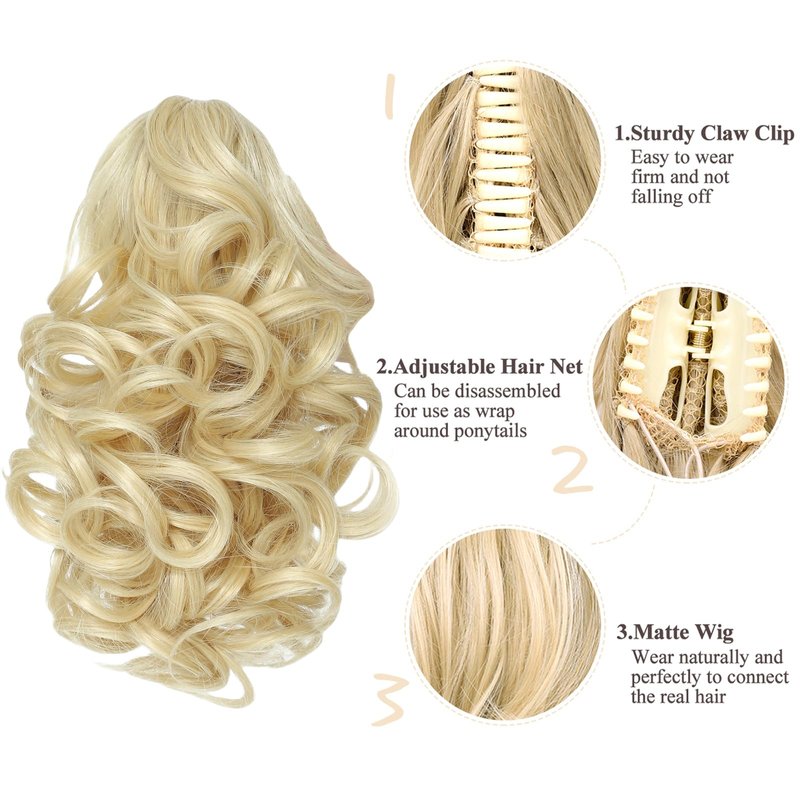 - 【Premium Material】: Our Curly Claw Clip Ponytail Extension is made of high-quality synthetic fibers(heat resistance: 300℉-350℉ or 150-180℃ ) with big gripping clip, the Fake ponytail Hairpieces is soft, Safe, comfortable, natural and beautiful. Touch with your hands as soft as your hair. specification: length: 18 inch; weight: About 3.5 oz/100g.
