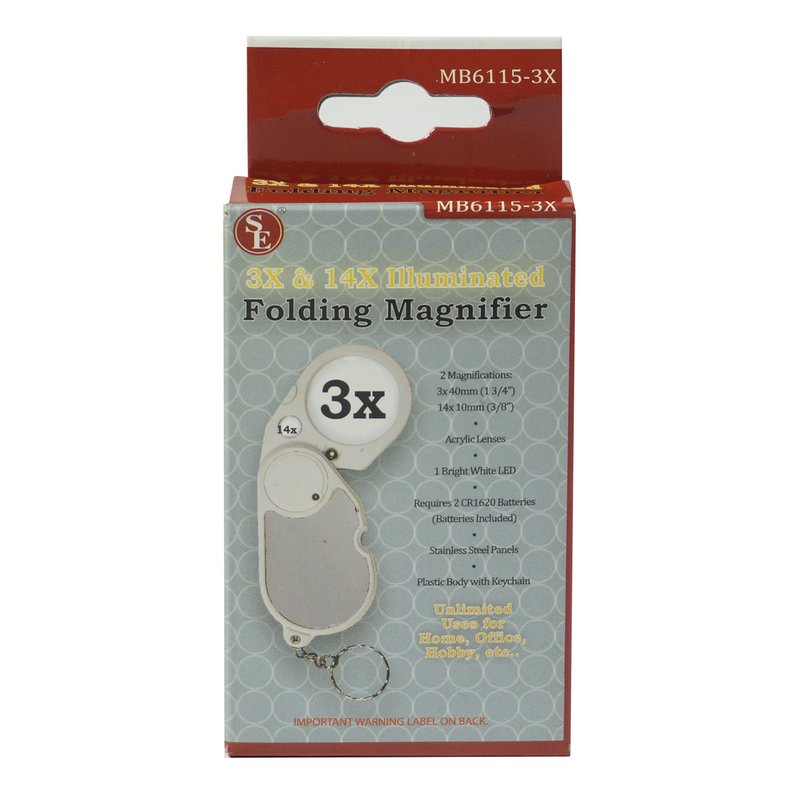 SE Dual 3x and 14x Illuminated Folding Magnifier - MB6115-3X
