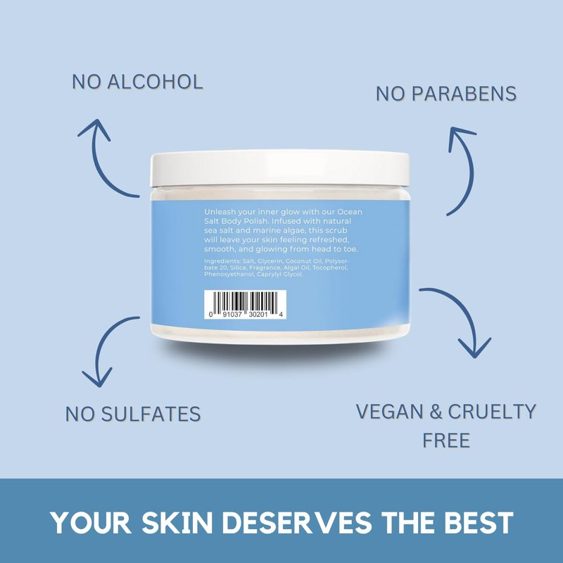 - NATURAL SEA SALT & MARINE ALGAE: Enriched with natural sea salt and marine algae oil, our unique formulation goes beyond exfoliation. The sea salt and marine algae contribute to improved hydration and overall skin condition. Users have reported anti-aging benefits, including a reduction in wrinkle depth, a more unified skin tone, and enhanced skin elasticity. Packed with essential nutrients, this salt scrub not only exfoliates but also moisturizes and nourishes your skin.