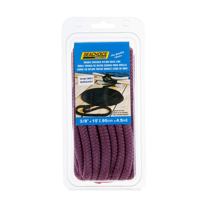 Seachoice Double-Braid Nylon Dock Line w/Eye Splice, Pre-Shrunk, Heat Stabilized, 3/8 in. X 15 Ft., Burgundy