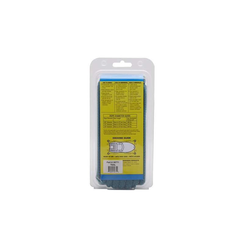 Seachoice Double-Braid Nylon Dock Line w/Eye Splice, Pre-Shrunk, Heat Stabilized, 3/8 in. X 15 Ft., Teal Green
