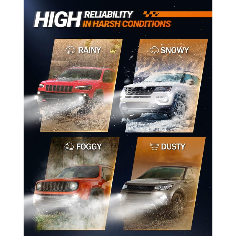 • 【2024 NEWEST SERIES ┃BEST CHOICE】 Dual-row 7035 CSP chips, Upgrading from 12 to 24 PCS, High Lumens Strong Penetration. The wide-angle design covers multiple lanes and clearly sees pedestrians on both sides of the road. When you are driving through dense fog, rain, or even snow, your standard headlights just can't cut through the thick mist. That's where our fog lights with 600% high brightness come into play.