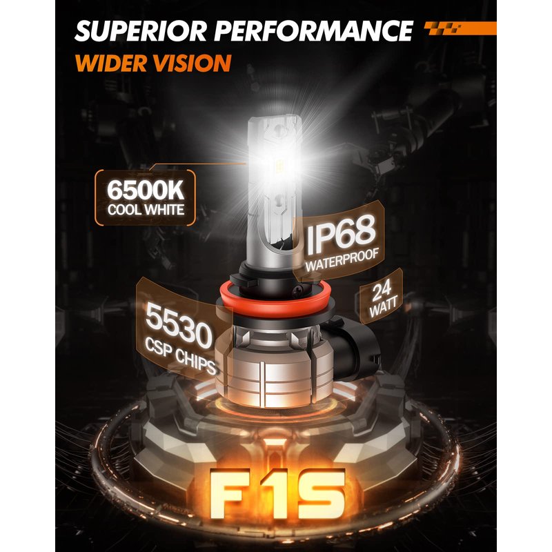 - Higher Brightness and Farther Range: Equipped with advanced technologies, such as variable focus and auto-dimming features, which adjust the beam pattern to suit the driving conditions. High-intensity of F1S Series H11 fog lamps light also reduces the need for replacing the vehicle's LED bulbs frequently