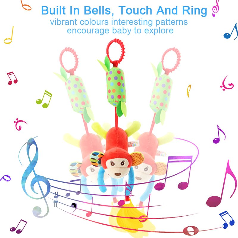 Sealive 4 Piece Baby Stroller Toy Sensory Musical Toys, Soft Rattles Hanging Plush Activity Crib Car Seat Toys for Babies Boy Girl