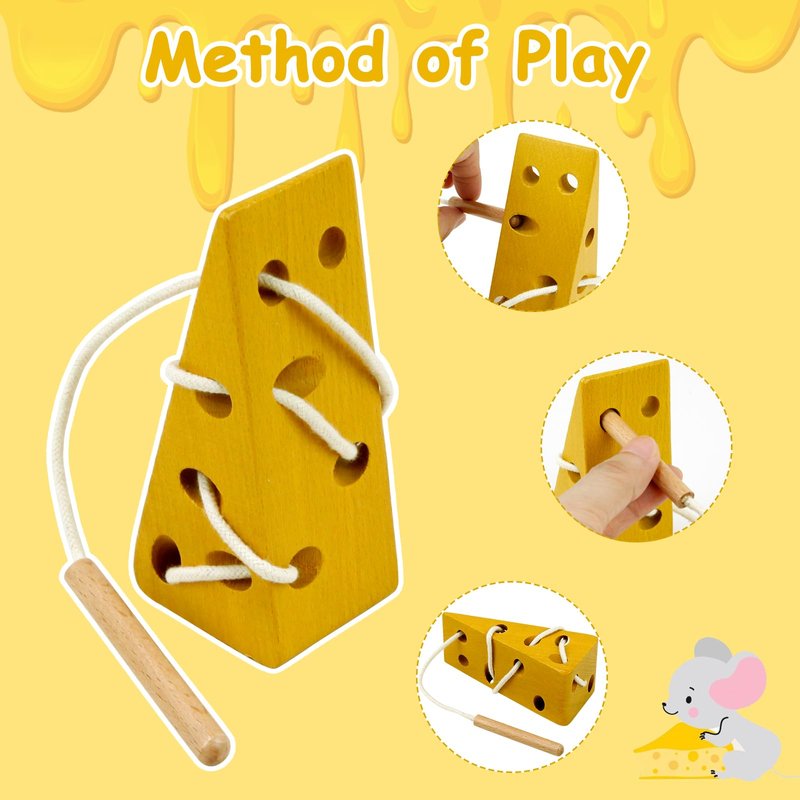 Sealive Early Development Toys Wooden Lacing Toys, Montessori Activity Kids Cheese Toys, Children Learning Educational Wood Block Puzzles Toy for Toddlers Boys Girls (Cheese)