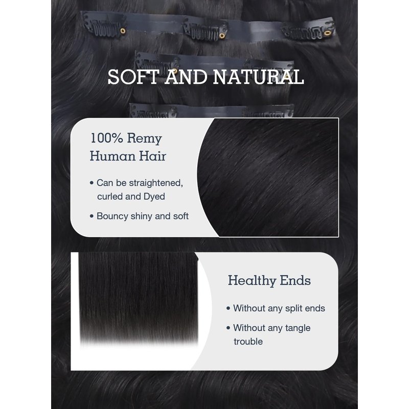 - Premium Human Hair Clip in: These high-grade remy human hair extensions are tangle-free, offering a smooth and natural look while feeling soft and comfortable. They can be restyled, straightened, curled, dyed, and styled as desired, but try to avoid using too much heat (keep it under 250F). We recommend washing them less frequently to prolong their lifespan.