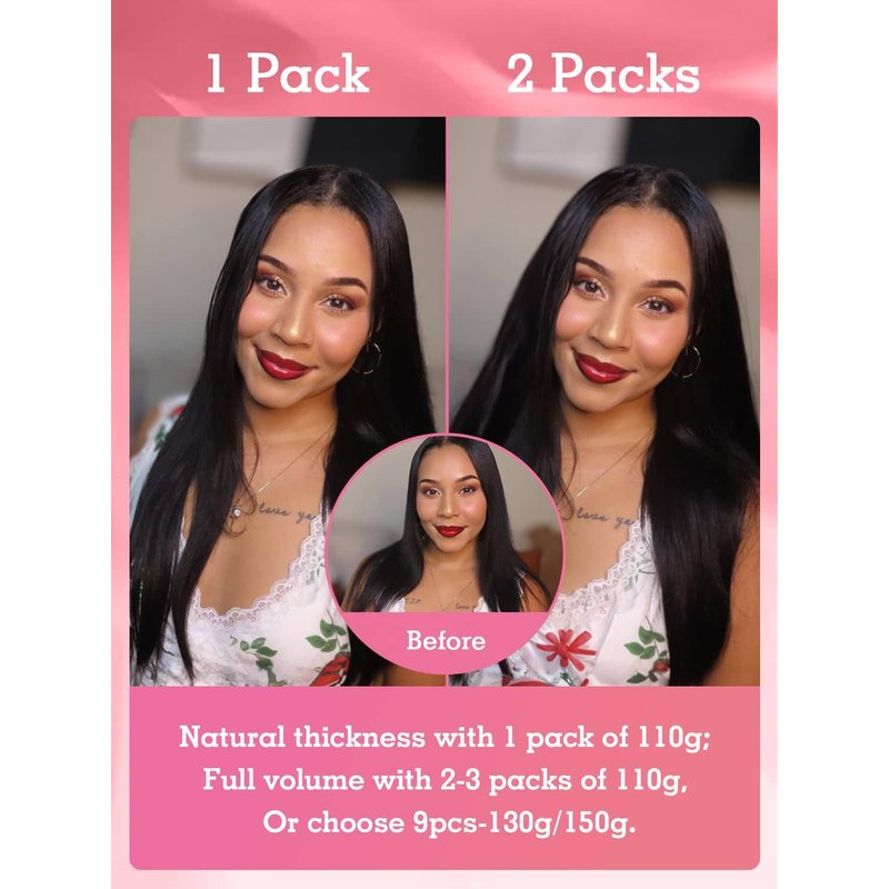 - Versatile Styling: Create various hairstyles with these seamless clip in hair extensions to add length, volume or highlights for a personalized look. Achieve natural thickness with 1-2 sets or full volume with 2-3 sets.