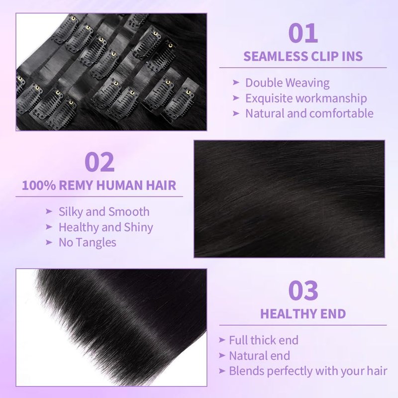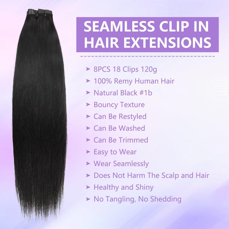 - 💕【High Quality Real Human Hair】Seamless Real human hair extensions. Anti-tangle, non-shedding, soft like natural hair.Hair extension clip in contains 8 pieces, 18 clips, weight 120 grams.If you want to achieve the perfect effect, it is recommended to increase the thickness by 2 packs and the length by 2-3 packs.