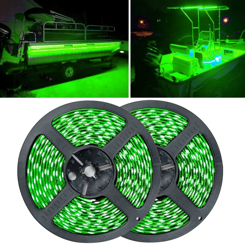 - Package Includes: 2pcs 5m(16.4ft) Marine LED Strip Lights Green + 20pcs led strip clips and screws.