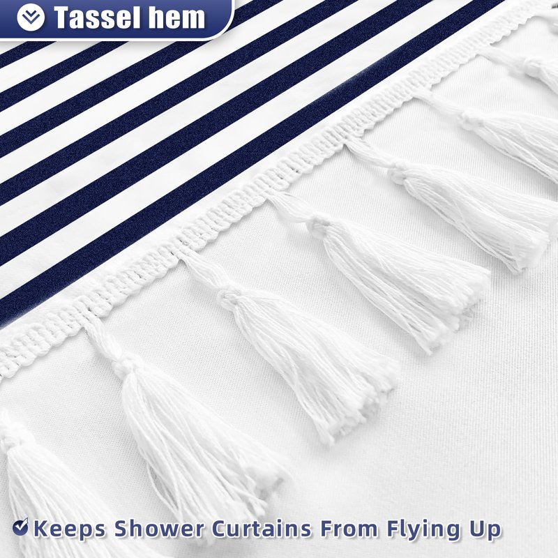 Seasonwood Extra Long Shower Curtains White and Blue Striped Shower Curtain with Tassel, 96 inch Waterproof Bathroom Curtains with 12 Hooks,Washable 72 x 96