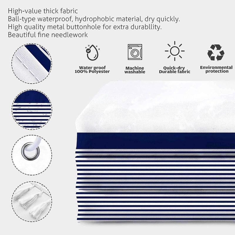 - ☞Striped Shower Curtain 180 GSM FABRIC -- Durable but soft feeling fabric with 180 GSM means very heavy duty, which ensures a bathroom shower curtain last longer and will be more pricey.