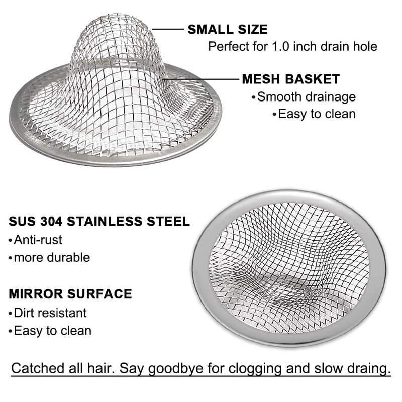 Seatery 1.0" Small Drain Strainer, Drain Mesh Basket, Bathroom Sink Drain Strainers, 2PCS Drain Hair Catchers for Laundry, Mop Pool, Utility, Slop, RV Sink, Stainless Steel Drain Filter