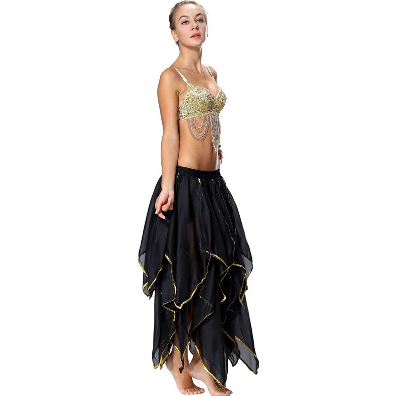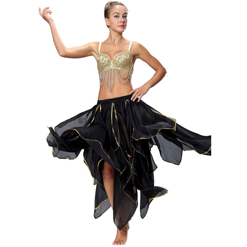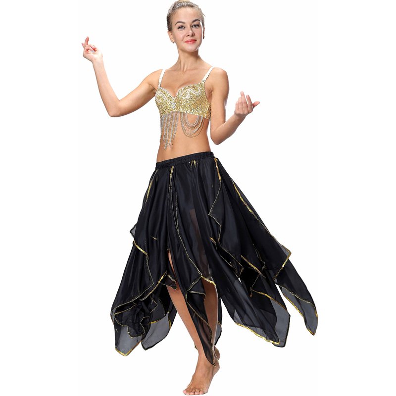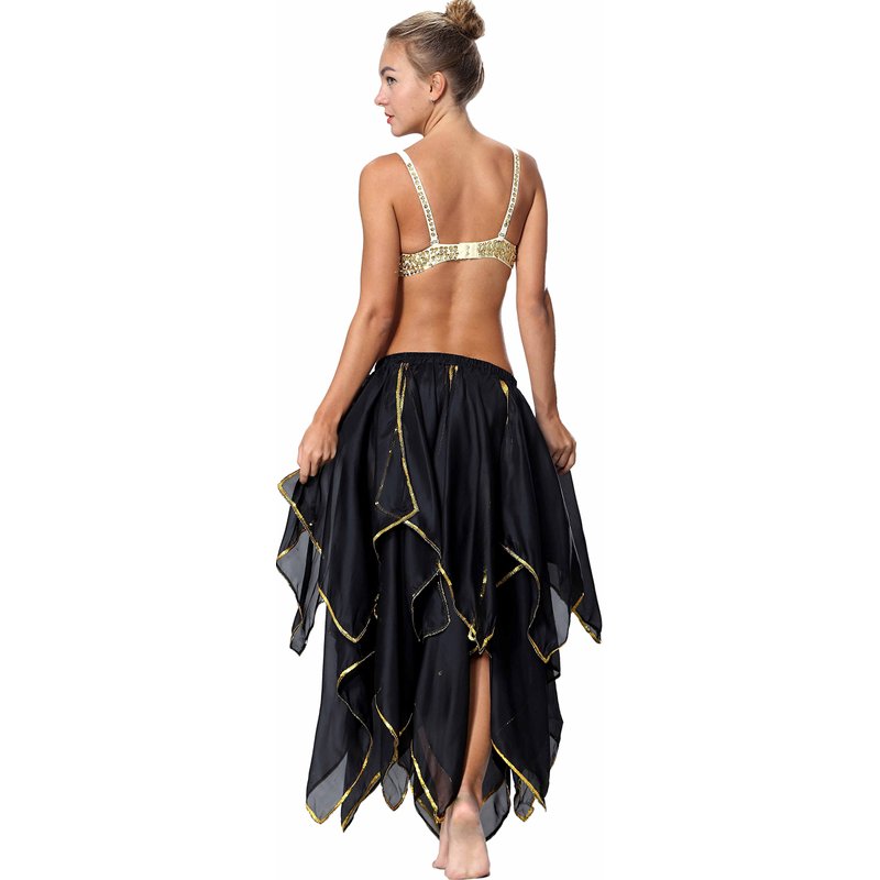 - 10 PANEL WITH GOLD SEQUINS - the 10 chiffon panel belly dance costume is made in the classic style for classic Raqs sharqi. This bellydance skirt is perfect for spinning and doing dynamic moves as the skirt highlights the dancer's movements. The flowy skirt with panels move beautifully with any hip movement. The Gold sequins on the steampunk skirt flicker like flames under the stage lights and look amazing with every spin, gives just the right amount of shimmer and bling.