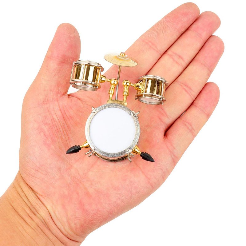 Seawoo Miniature Drum with Case Mini Percussion Musical Instrument Mini Drum Miniature Dollhouse Model Christmas Ornament and Gift (Drum)