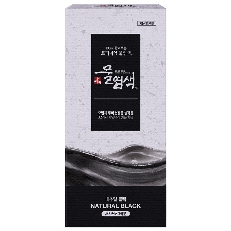 Seedbee Natural Black Water Coloring Hair Dye Powder Mix, 32 Herbal Ingredients for Healthy and Shiny Hair (1.0582 Ounce, 3 Pouches, Powder, Demi-Permanent, All Hair Colors)