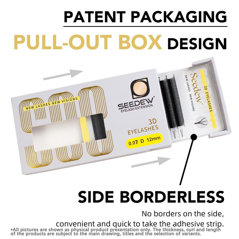 - ⭐【Convenient Carton Packaging】Our SEEDEW lash extensions are packed in an exclusive and less breakable pull-out carton. The pull-out design makes it easier for you to take out the adhesive tape strips. And you don't even need to tear off the whole piece of lashes, convenient and saving time.