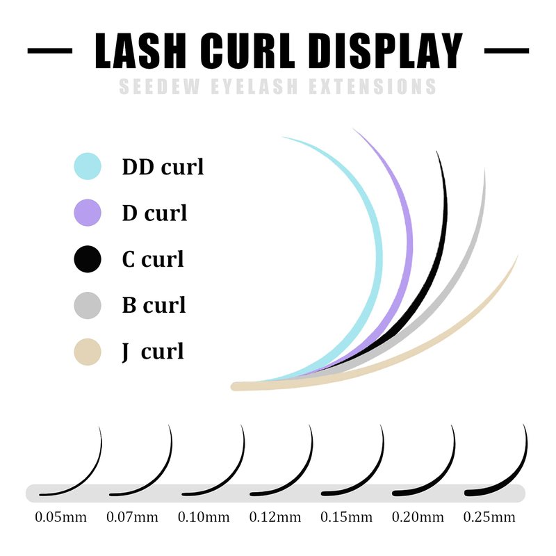 √SEEDEW 4D(W Shape) lash extensions are soft, natural, fluffy, lightweight and long-lasting. C curl lashes have a natural effect, while the D curl are more curly, and the dramatic effect. For eyes with deep sockets, we recommend D curl.