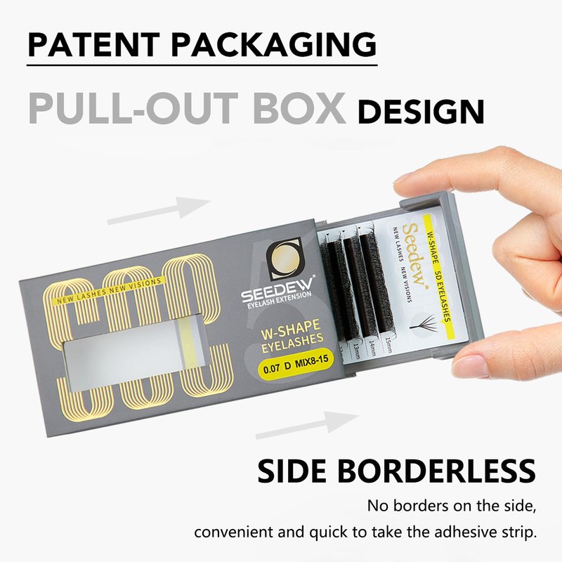- ⭐【Convenient Carton Packaging】Our SEEDEW lash extensions are packed in an exclusive and less breakable pull-out carton. The pull-out design makes it easier for you to take out the adhesive tape strips. And you don't even need to tear off the whole piece of lashes, convenient and saving time.