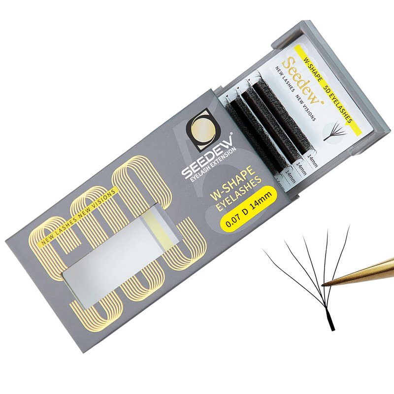 SEEDEW 5D Lash Extensions, 0.07mm D Curl 14mm 12 Rows/Tray, W Shape Flat Stem, Korean PBT Volume False Eyelashes Grafting for Beginner Artist, Lash Tech, Beauty Salon(5D-Matte Black-0.07-D-14mm)