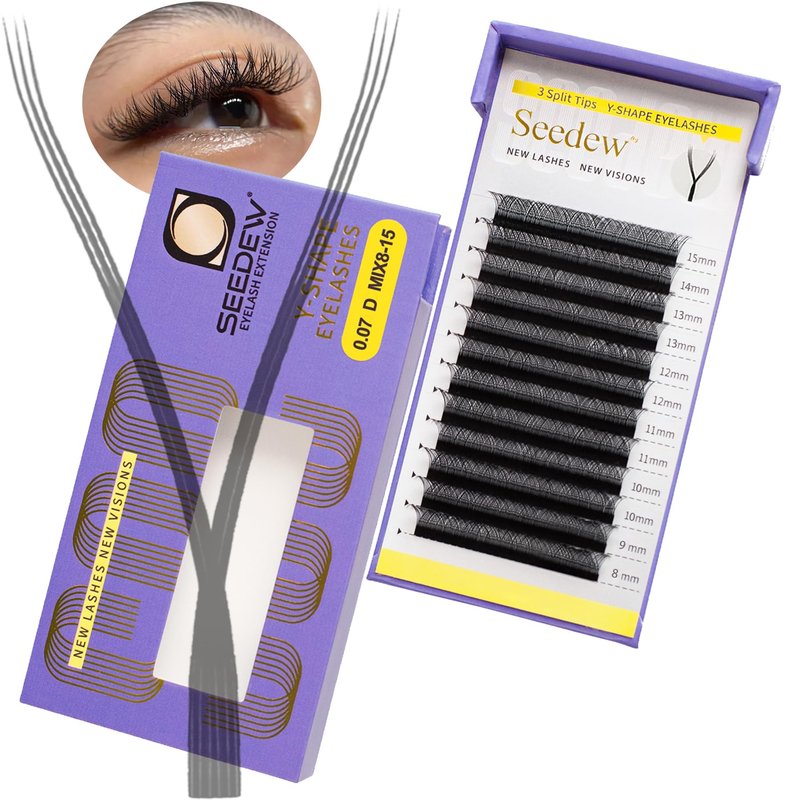 √SEEDEW Y Shape 3 Split Tips-YYY eyelashes are soft and natural, fluffy and light, and long-lasting. C curl lashes has a natural effect, while the D curl is more curly, and the dramatic effect.