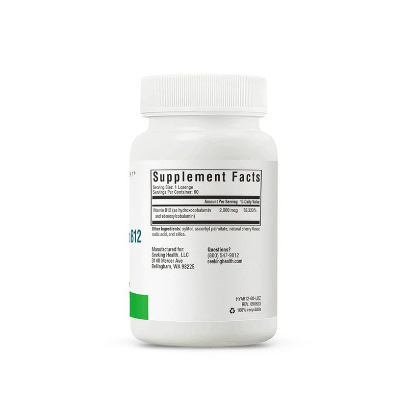 Seeking Health Hydrox-Adeno B12, 2000 mcg Methyl-Free Vitamin B12, Energy and Focus Support for Men and Women, Methylation and Homocysteine Support, Detoxification, Vegan and Vegetarian (60 lozenges)*