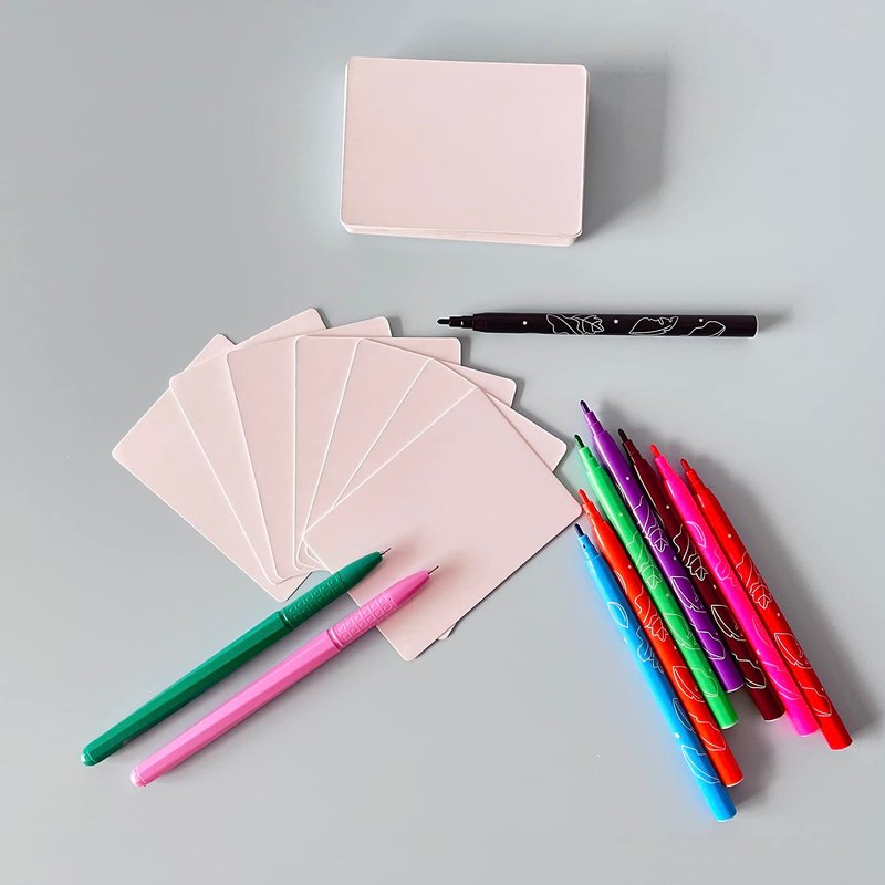 Design your own game cards with ball point pens, pencils, permanent markers, crayons, and so on. No smudging of ink after drying.