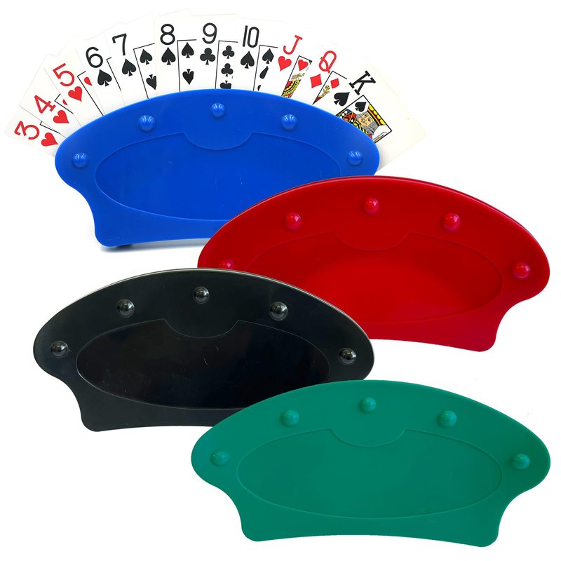 - 4pcs mixed color card holders(red,green,blue,black) only,playing cards are not included.