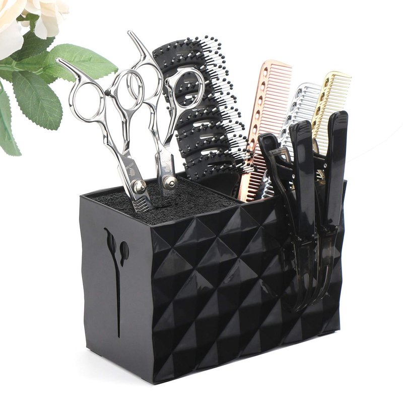 - 1 HOLDER ONLY【Keeps everything orderly and at your finger tips】Contains 2 compartments with 1 detachable fiber insert to hold scissors in place. Compact yet efficient enough to hold multiple shears, hair dye brushes, clips and a bunch of other tools in the storage box.