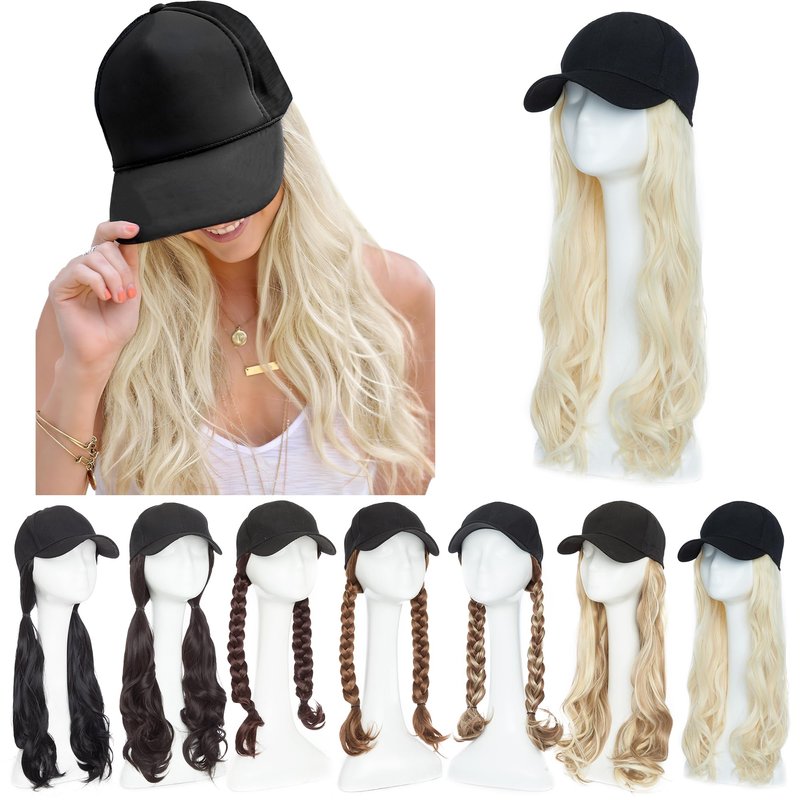 - Baseball cap with hair extension is made of high quality synthetic fiber specially developed to immitate human hair.It's a wig hat with hair that touches soft and smooth like real hair at a more affordable price.Be aware that synthetic hair cannot be curled or dyed.All hair may shed slightly especially when you wear for the first time which is normal.Just shake it and take away the dropped hair.Colors showed may vary slightly depending on your personal computer or cellphone monitor settings.