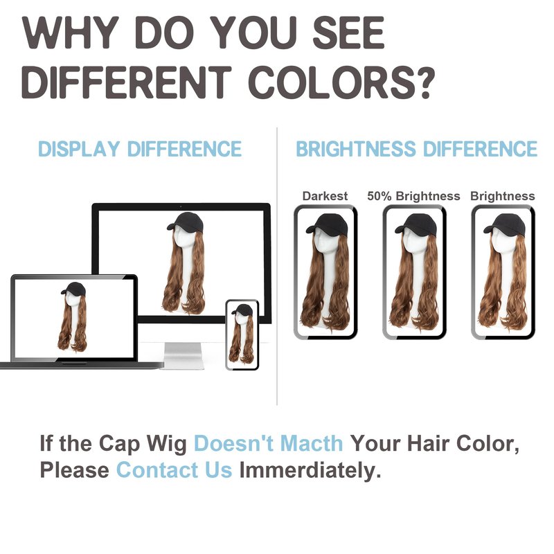 • Baseball cap with hair extension is made of high quality synthetic fiber specially developed to immitate human hair.It's a wig hat with hair that touches soft and smooth like real hair at a more affordable price.Be aware that synthetic hair cannot be curled or dyed.All hair may shed slightly especially when you wear for the first time which is normal.Just shake it and take away the dropped hair.Colors showed may vary slightly depending on your personal computer or cellphone monitor settings.