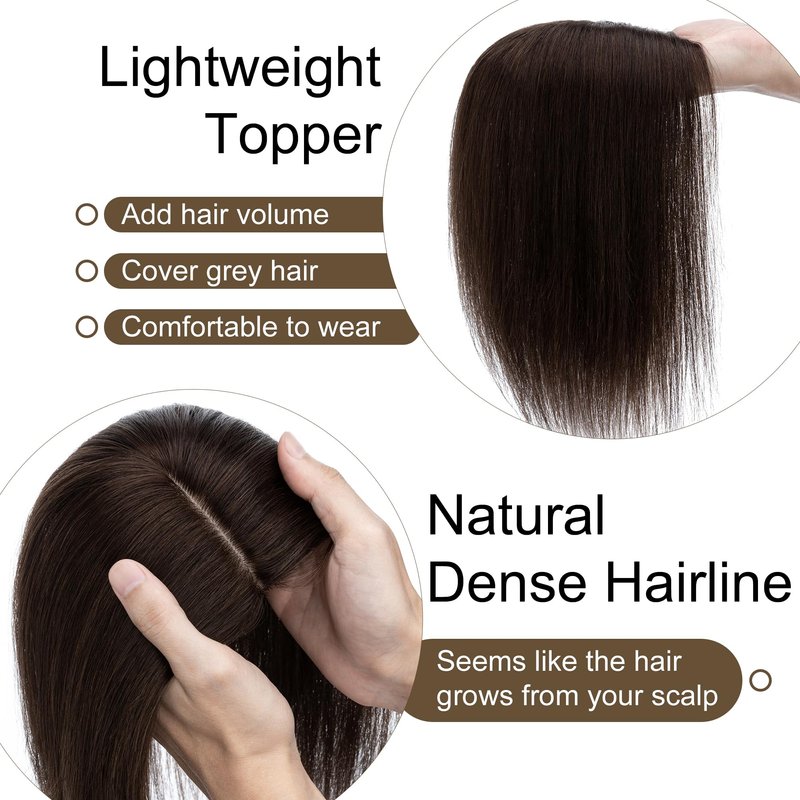 - ♛130% density♛ Compared to 100% density, 130% straight topper hairpieces is thicker and more durable as well as can last longer. Clip in hair piece has dense hairline and close. Mainly cover the top and side, less focus on backside.