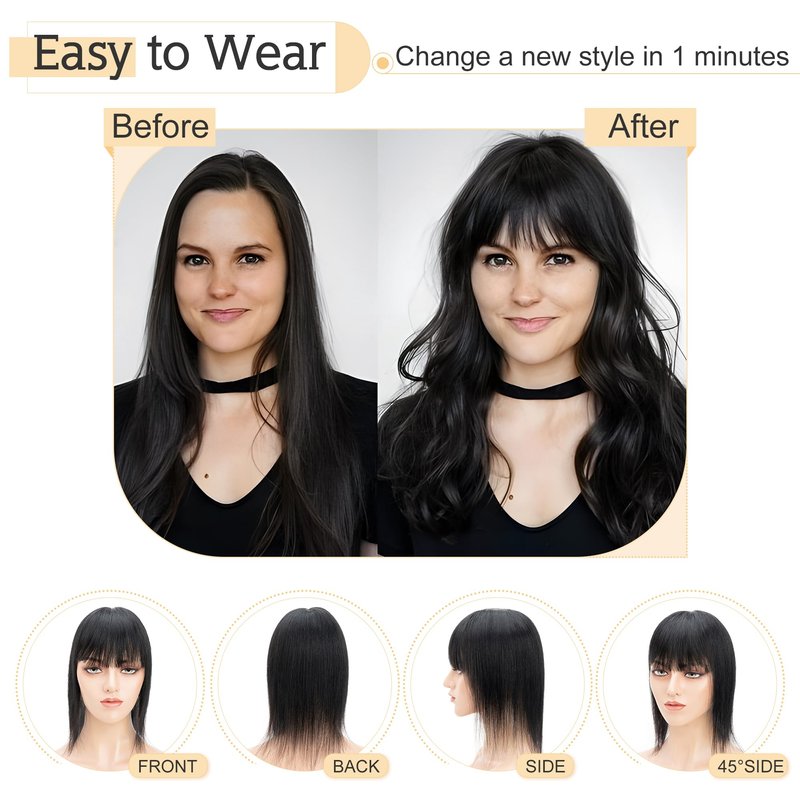 - ♛Easy to wear with 3 anti-slip clips♛ Just take a few seconds to apply. Easy to wear, providing secure yet comfortable attachment for all day wear. NOT SUITABLE for someone with nearly bald top cuz the clips may not stay in well.