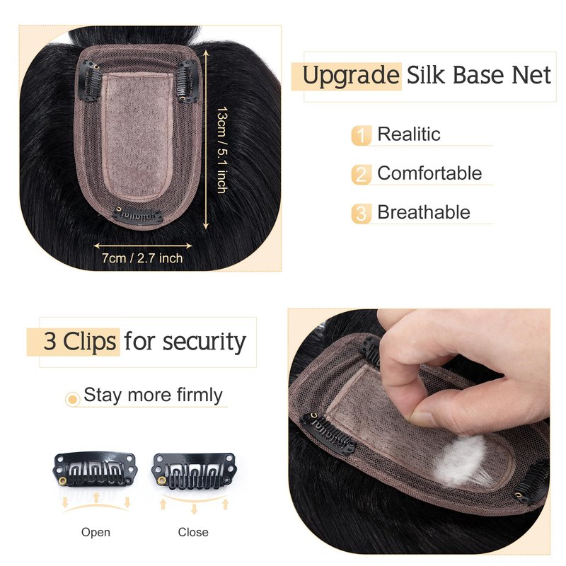 - ♛Realistic Silk base coverage Toupee♛ Topper with silk base has the most natural appearance compared to other like products.It can barely be told from real human scalp even through close observation.No one can find your secret. Base size: 7 cm x 13 cm(2.7”x5.1” approximately).
