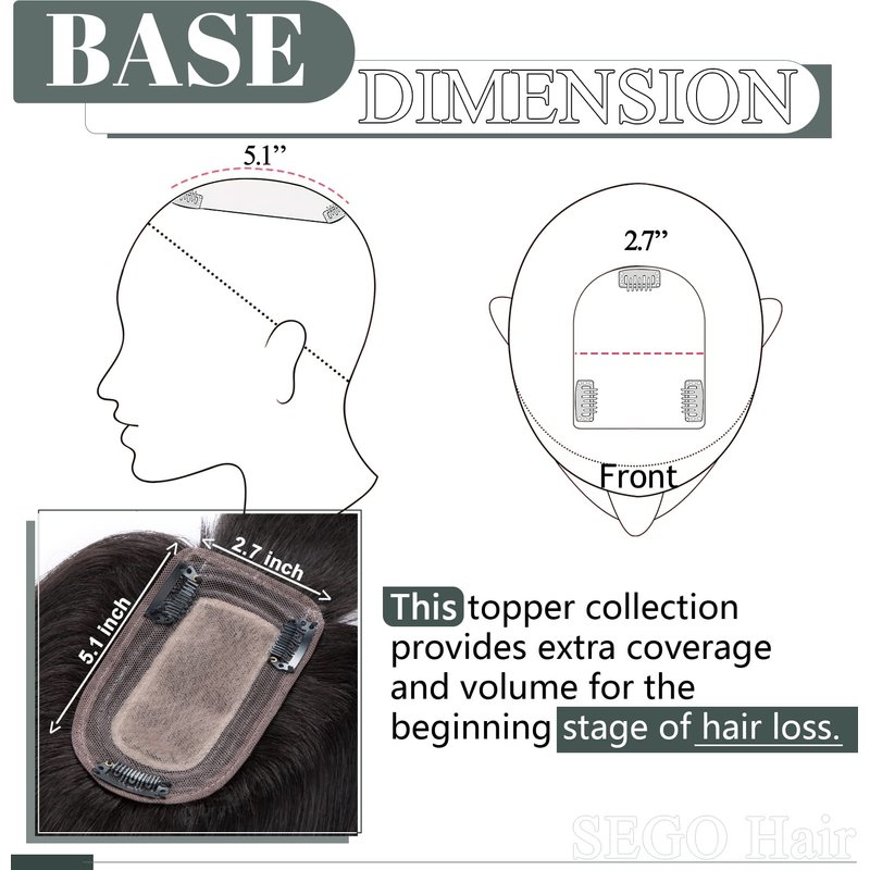 - 【100% Real Remy Human Hair】SEGO hair toppers with 100% Remy human hair. Tangle-free, silky straight, soft, lay flat and smooth, blends in with natural hair when put on. This piece can be washed, dyed, curled, and straightened(Avoid ironing the hair with high temperature advise 212-248 ℉). You can also cut it in with your hair for a more natural look.