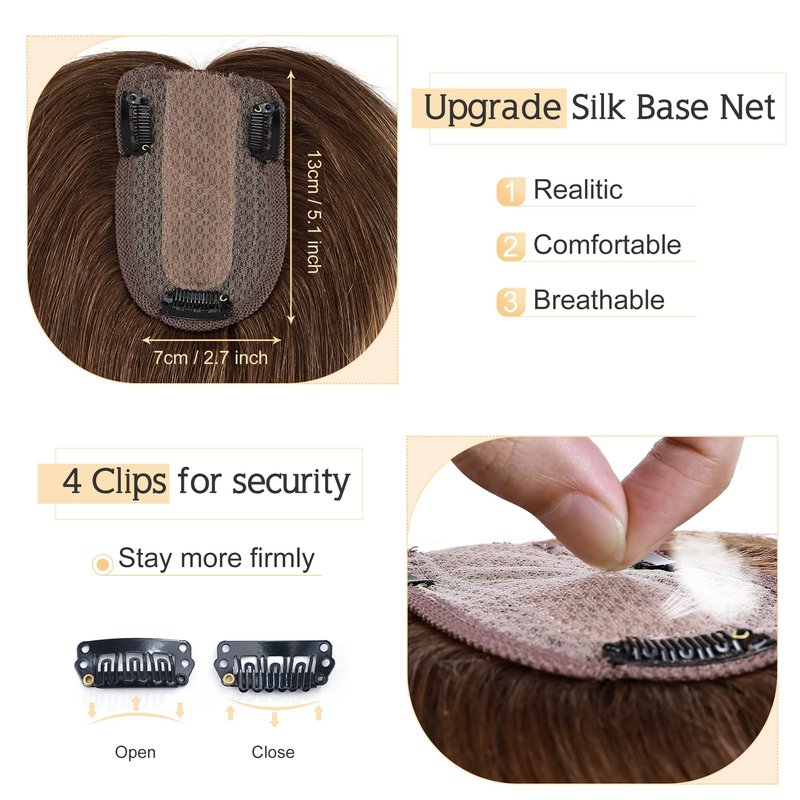 - ♛Realistic Silk base coverage Toupee♛ Topper with silk base has the most natural appearance compared to other like products.It can barely be told from real human scalp even through close observation.No one can find your secret. Base size: 7 cm x 13 cm(2.7”x5.1” approximately).