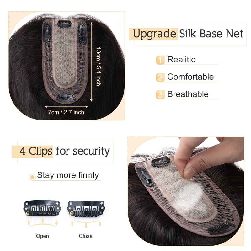 - ♛Realistic Silk base coverage Toupee♛ Topper with silk base has the most natural appearance compared to other like products.It can barely be told from real human scalp even through close observation.No one can find your secret. Base size: 7 cm x 13 cm(2.7”x5.1” approximately).