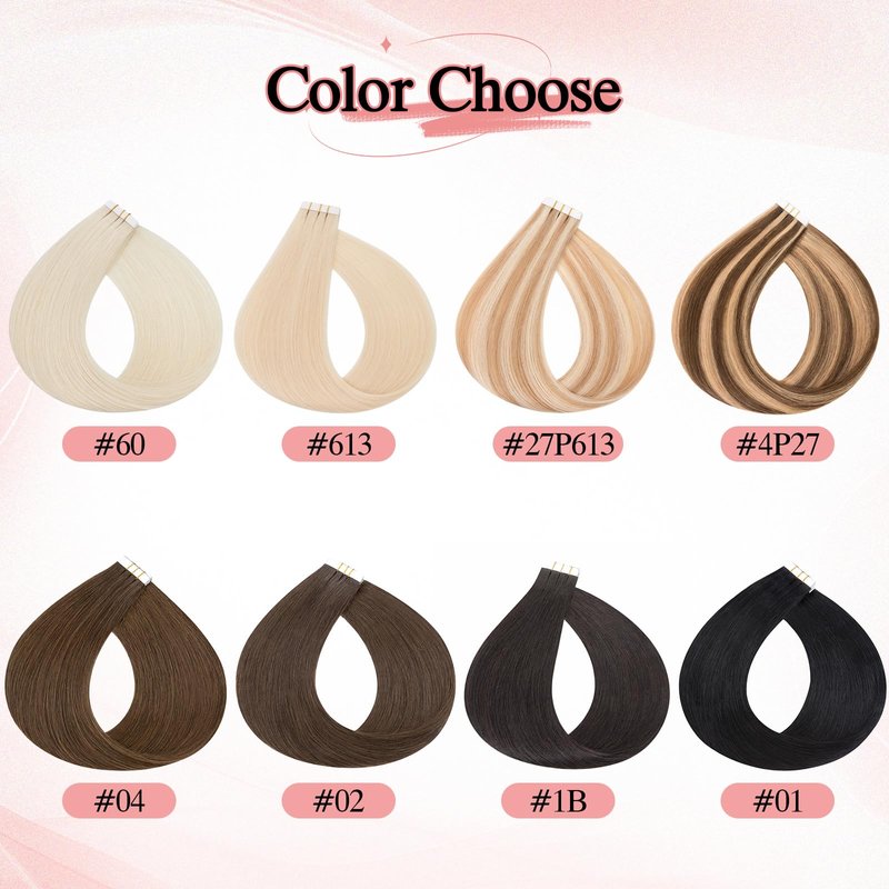 - Warm Tips: Since our tape in hair extensions is real human hair, color variations may occur. In addition, factors such as dye batches, equipment display, and different light sources will also cause color differences. If you have any questions, you can always contact us.