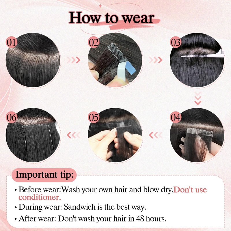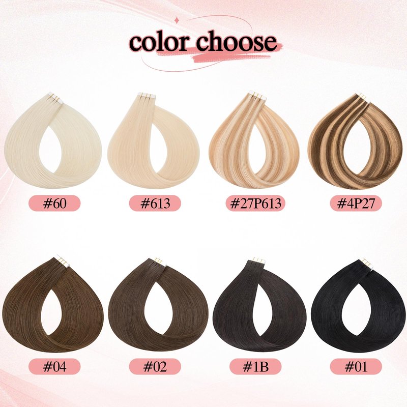 - Warm Tips: Since our tape in hair extensions is real human hair, color variations may occur. In addition, factors such as dye batches, equipment display, and different light sources will also cause color differences. If you have any questions, you can always contact us.