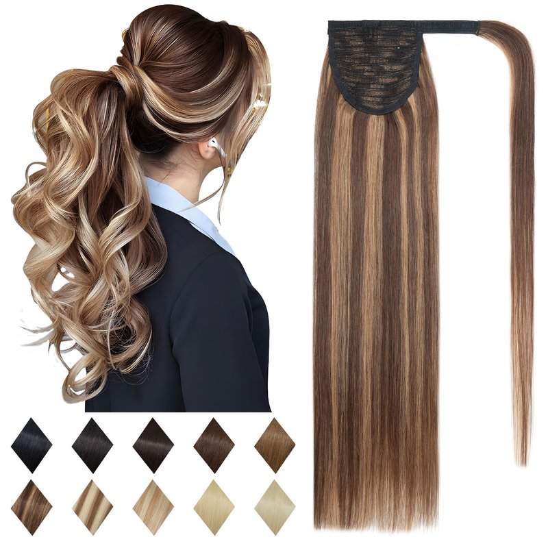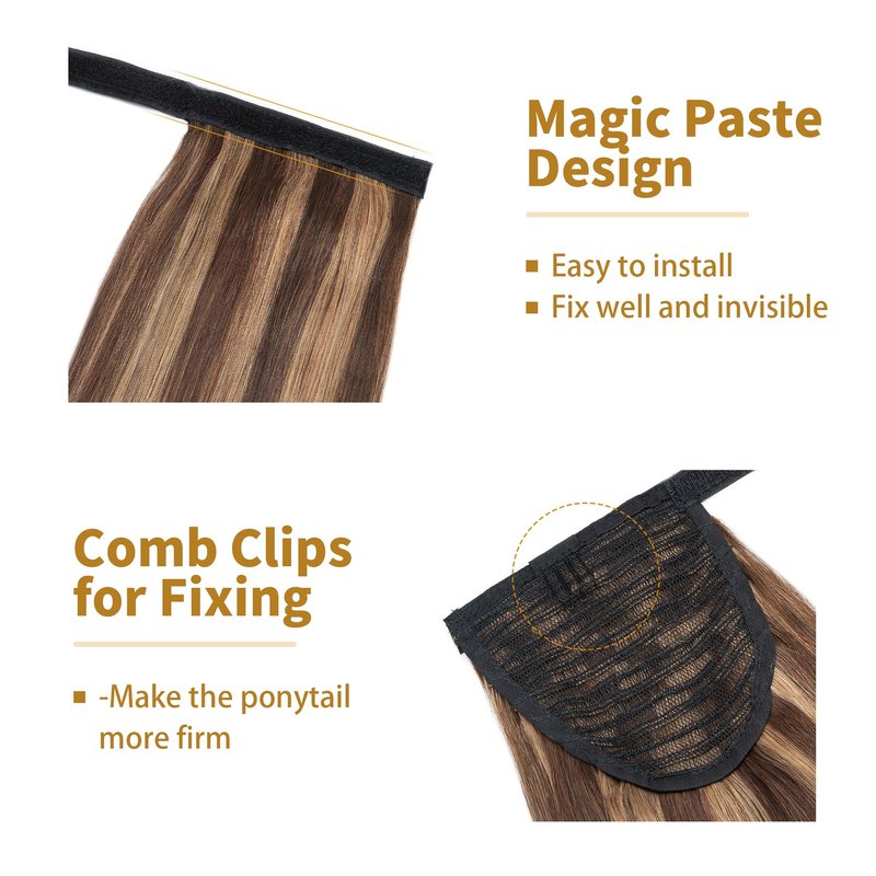 - ♛Super Easy to Wear ♛—Wrap around ponytail hairpieces, easy to wear and take off by yourself, no damage to your own hair. With the magic paste design, it’s convenient and can save you time. Just wrap it around your ponytail and clip in! Quick way to instantly add length and volume to your ponytail.