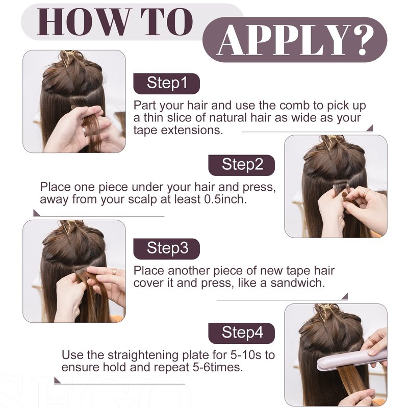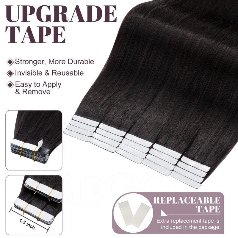 - 【Salon Quality Hair Extensions】SEGO tape in hair extensions human hair with 100% Remy human hair. Salon quality, tangle free, silky straight, soft, and smooth, blends in with natural hair when put on. Tape hair extensions can last 2-3 months with good care.