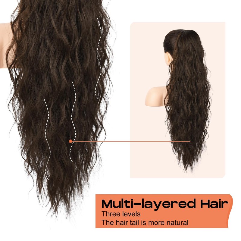 - 💖 Multi-layered Design - The wavy curly ponytail extension features a multi-layered hair tail design, which makes the pony tails hair extensions more natural. Wear it and you get a realistic and natural look! Length: wavy - 26"/66cm, straight - 28"/71cm, Weight: wavy - 190g/6.7oz, straight - 155g/5.5oz.