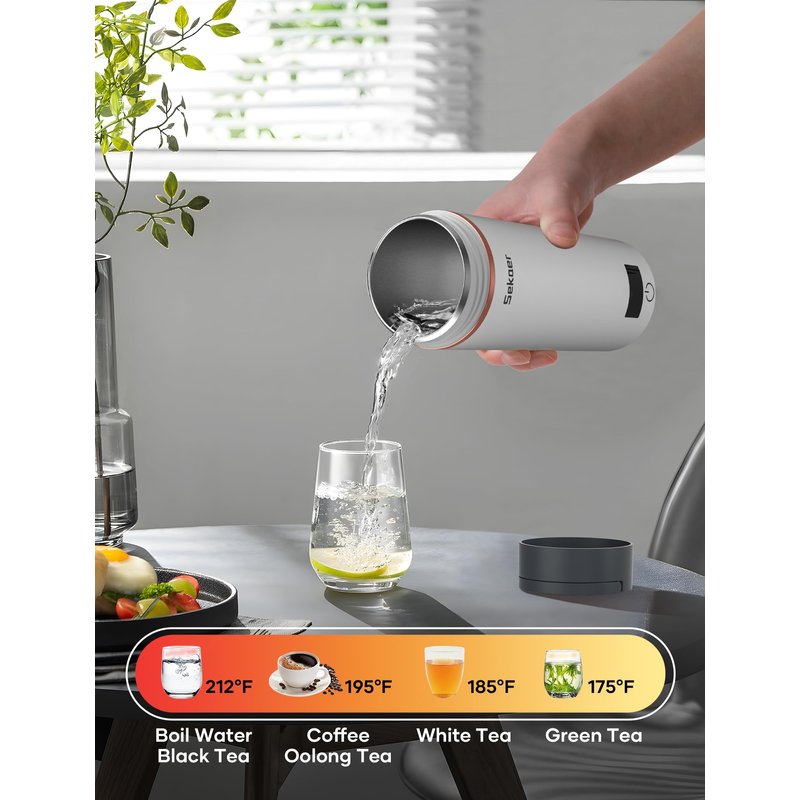 Sekaer Travel Portable Electric Kettle, Small Tea Kettle Coffee Mini Hot Water Boiler, 400mL & 304 Stainless Steel, with 4 Variable Presets and Auto Shut-Off SKE-840W