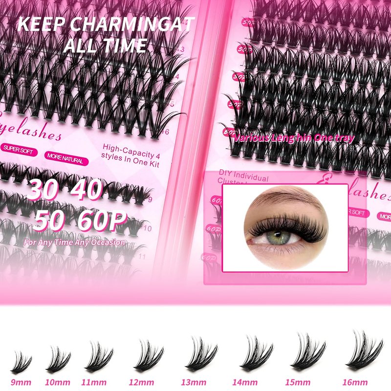 - Multi-type and Volume Shape: There are 4 styles eyelash clusters in this lashes extension kit, which allow you get different style of makeup following your thoughts; The eyelashes extensions can