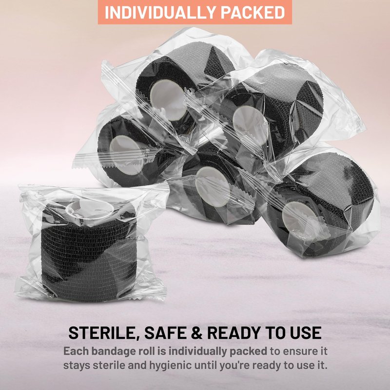 - MULTI-FUNCTIONAL: If you've been looking for adhesive bandage tape that is multifunctional, then your search is over! That's because our medical wrap comes with 6 rolls of black, self adhering tape. It measures in with a 2" width and each roll extends 5 yards! These wraps are perfect for medical use, costumes, sports or any other use you can think of! That means no more boxes of band aids, guaranteed!