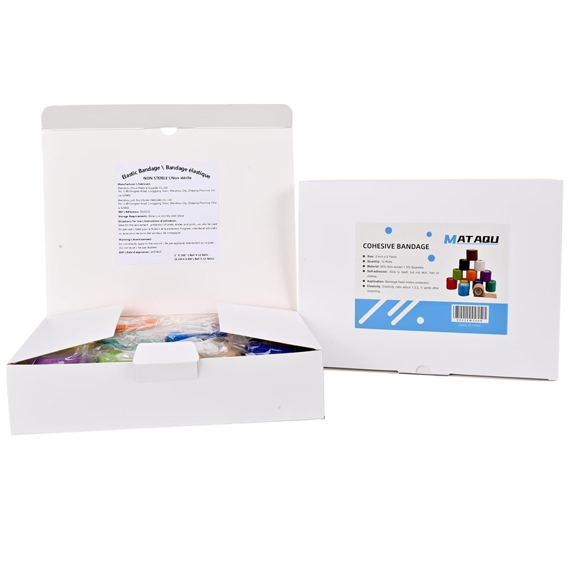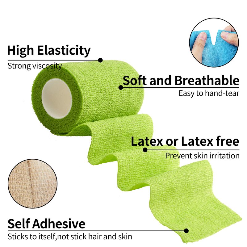 - Size: Approx 2 inch X 5 yard each roll, 12 rolls per package, self adhering wrap in 12 colors. Each bandage is individually packaged.