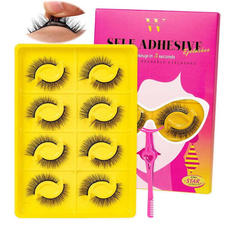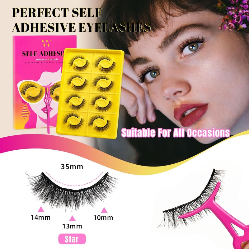 - 【Specification】You will get 8 pairs reusable self adhesive eyelashes 4 styles and a new innovative non-stick eyelash applicator. W self-adhesive false eyelashes comes with a dust cover to prevent dust gets in. W reusable self adhesive eyelashes are made with cutting-edge technology, and with premium synthetic fibers.